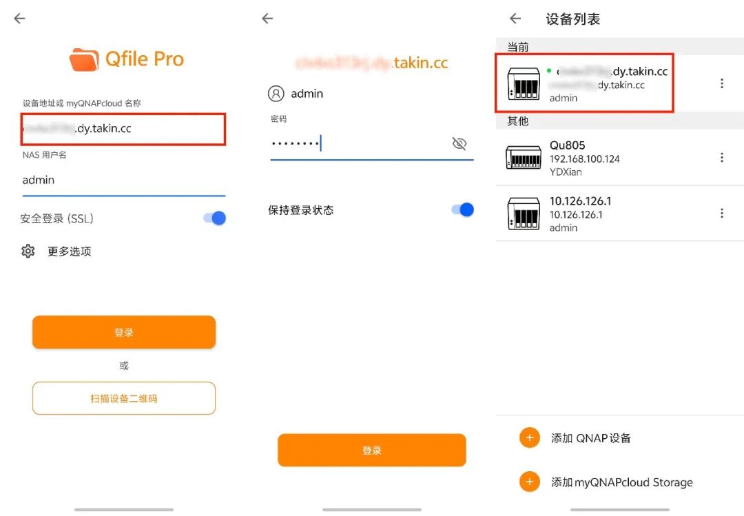 威联通官方移动应用 Qfile Pro 接入也没问题。输入地址,勾选SSL访问,输入账户密码即可。