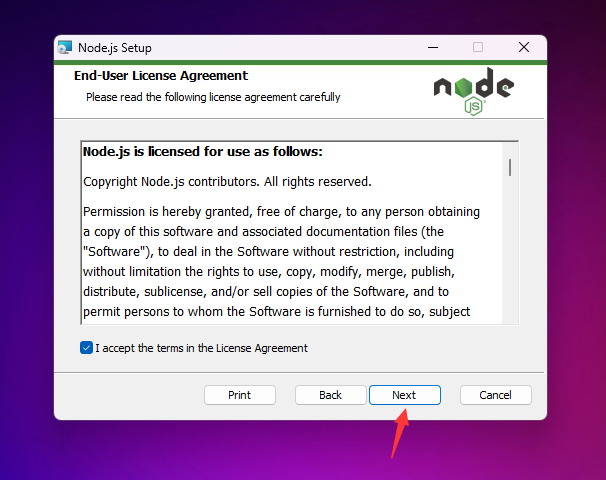 (1)下载完成后,双击安装包,开始[安装Node.js]