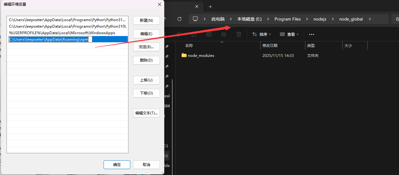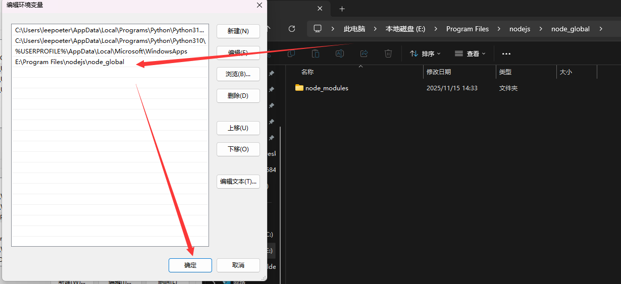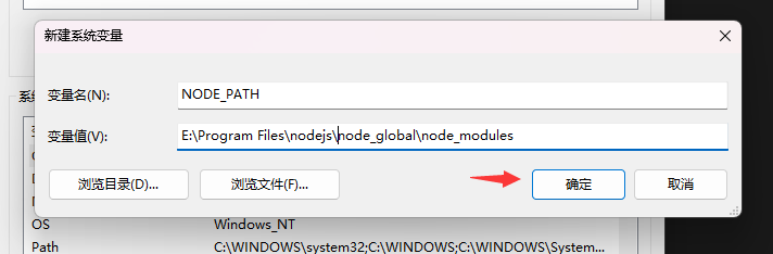 变量值:E:\Program Files\nodejs\nodejs\node_global\node_modules