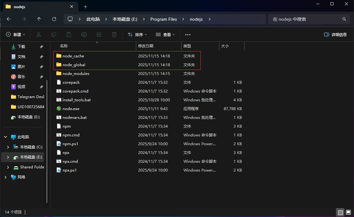 (1)找到安装的目录,在安装目录下新建两个文件夹【node_global】和【node_cache】