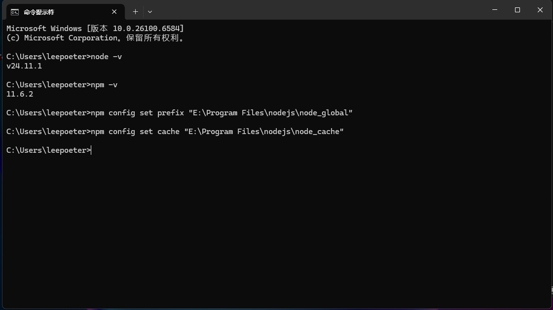 ②npm config set cache “你的路径\node_cache” (复制你刚刚创建的“node_cache”文件夹路径)