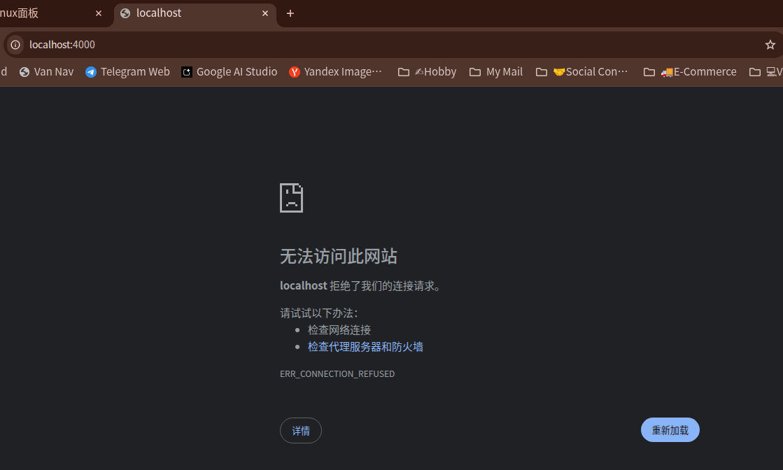 •端口占用:确保宿主的4000端口没有被其他程序占用。