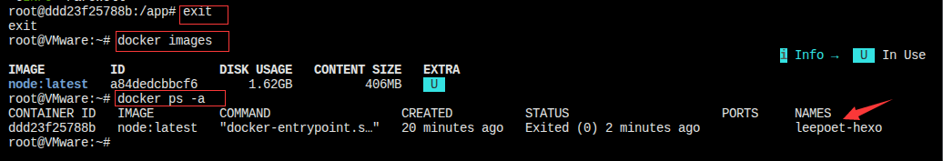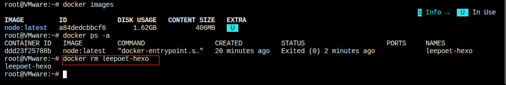 *在docker rm leepoet-hexo我们可以通过docker ps -a参数查看所有容器。