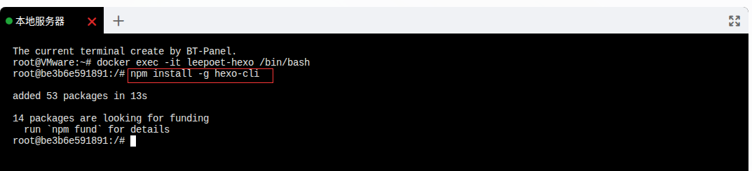 现在,容器已经在后台运行了。我们需要进入容器内部完成Hexo的安装。