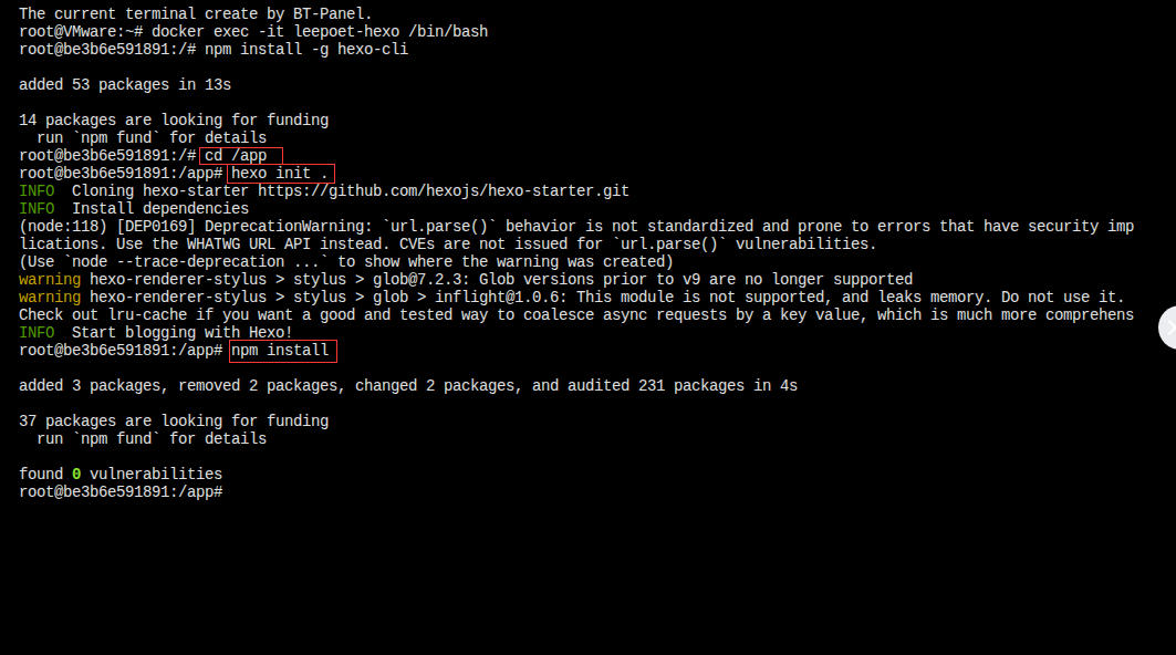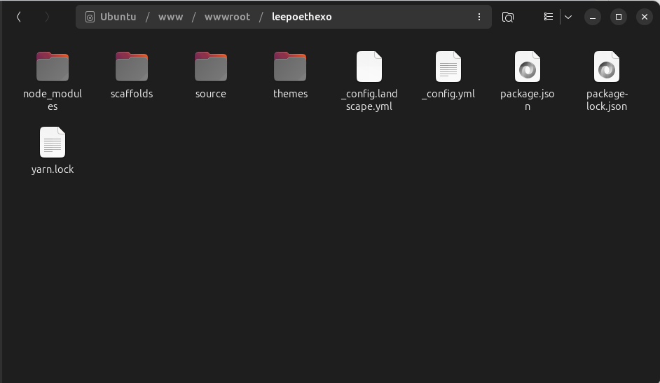 初始化完成后,你会在宿主机的 /www/wwwroot/leepoethexo目录下看到Hexo的项目文件。