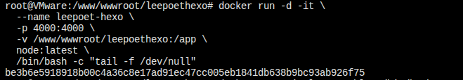 docker run -it --name leepoet-hexo -v /home/leepoethexo:/app node:latest /bin/bash