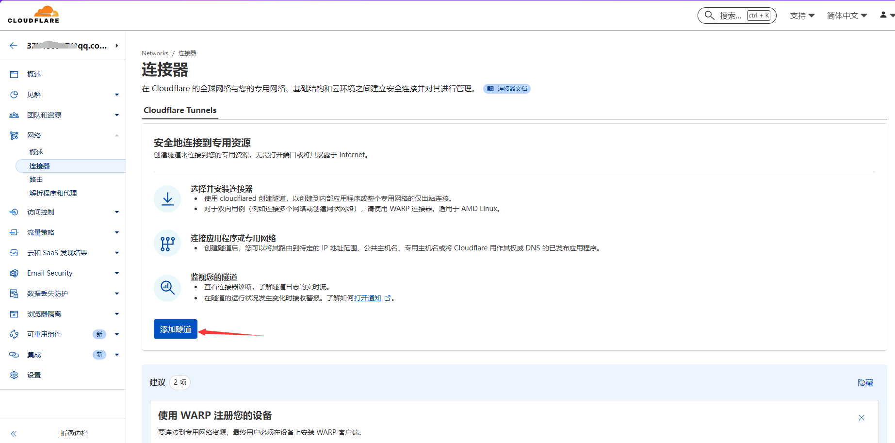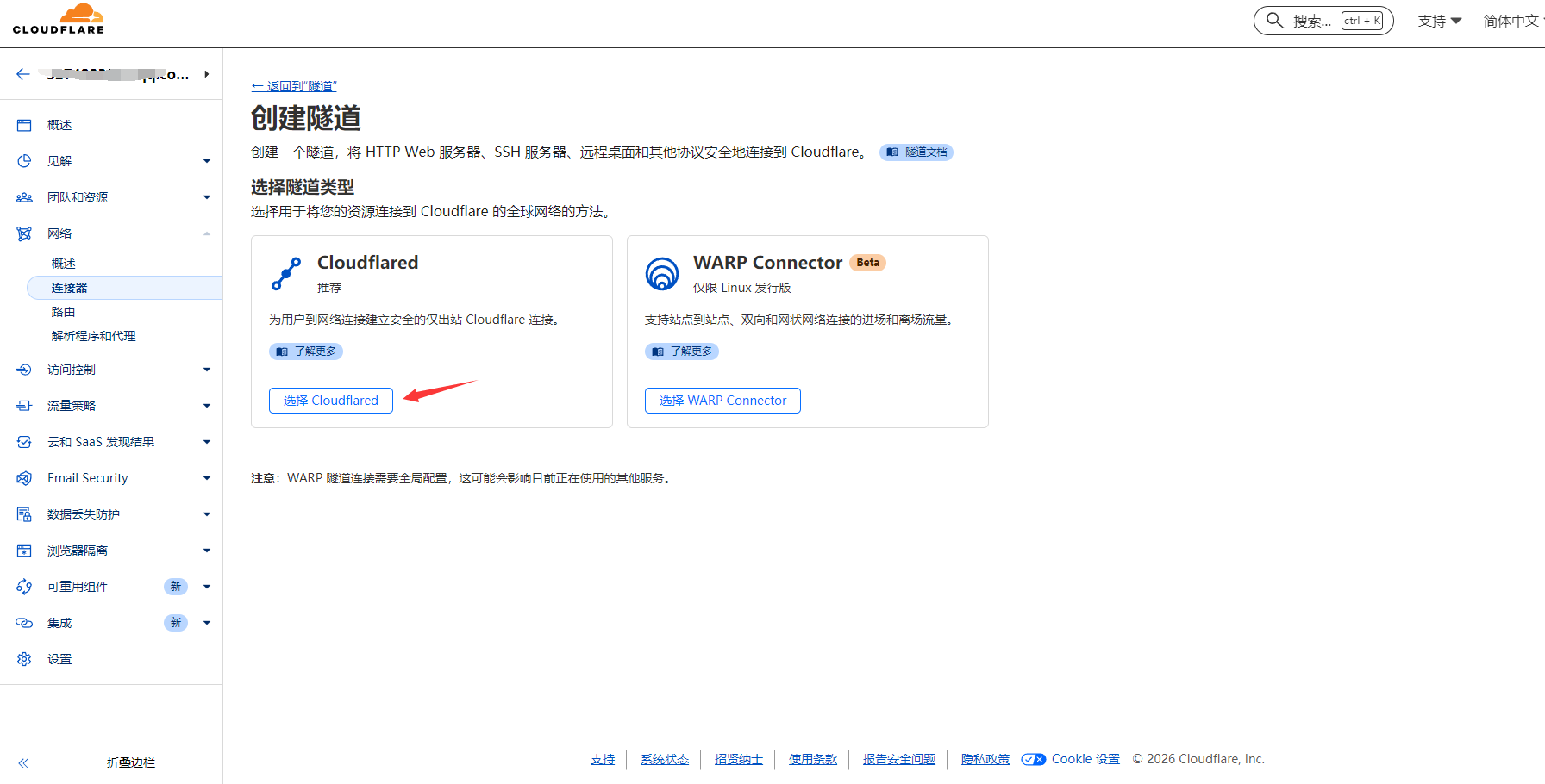 https://one.dash.cloudflare.com,网络-连接器-添加隧道