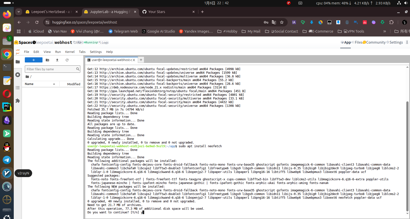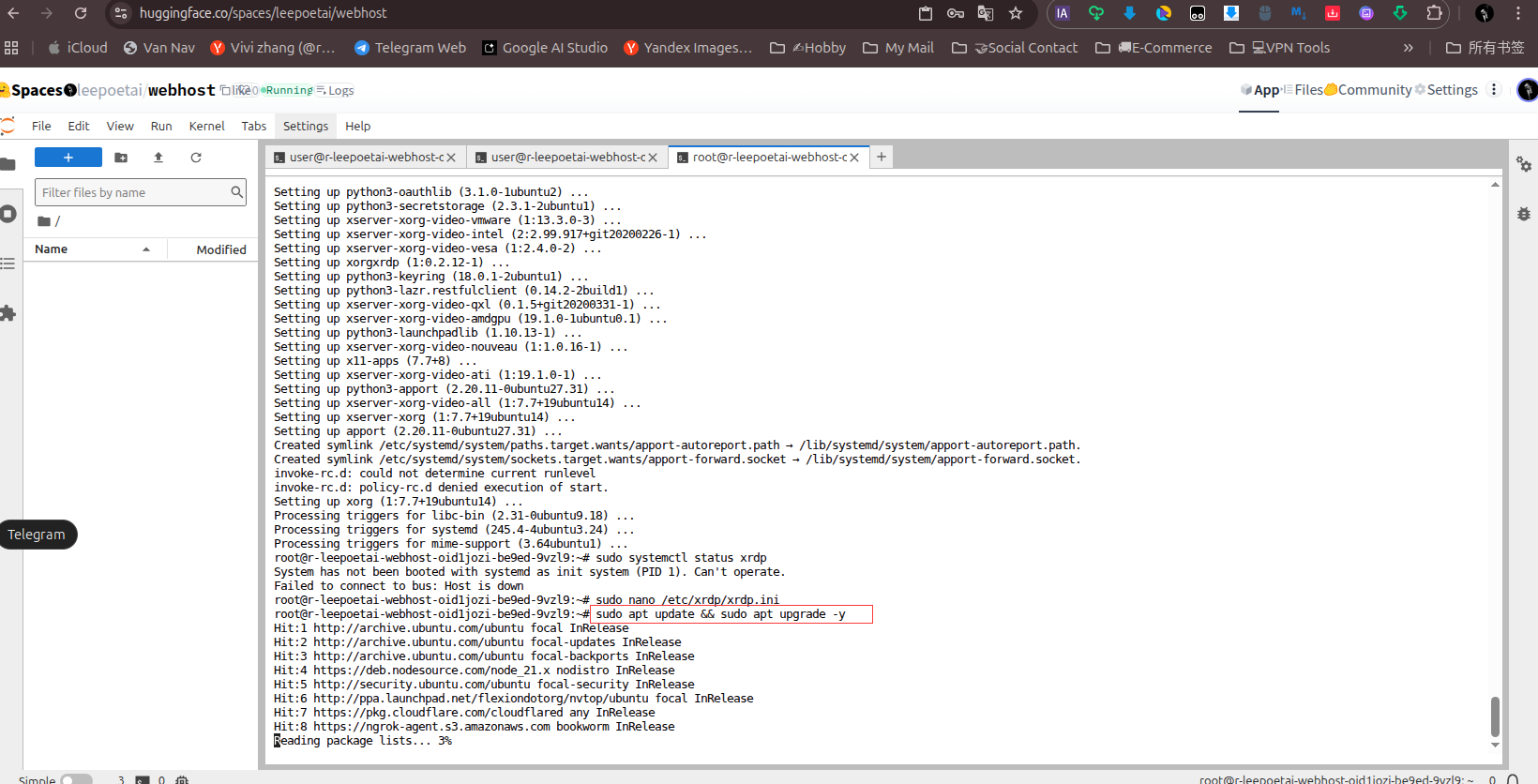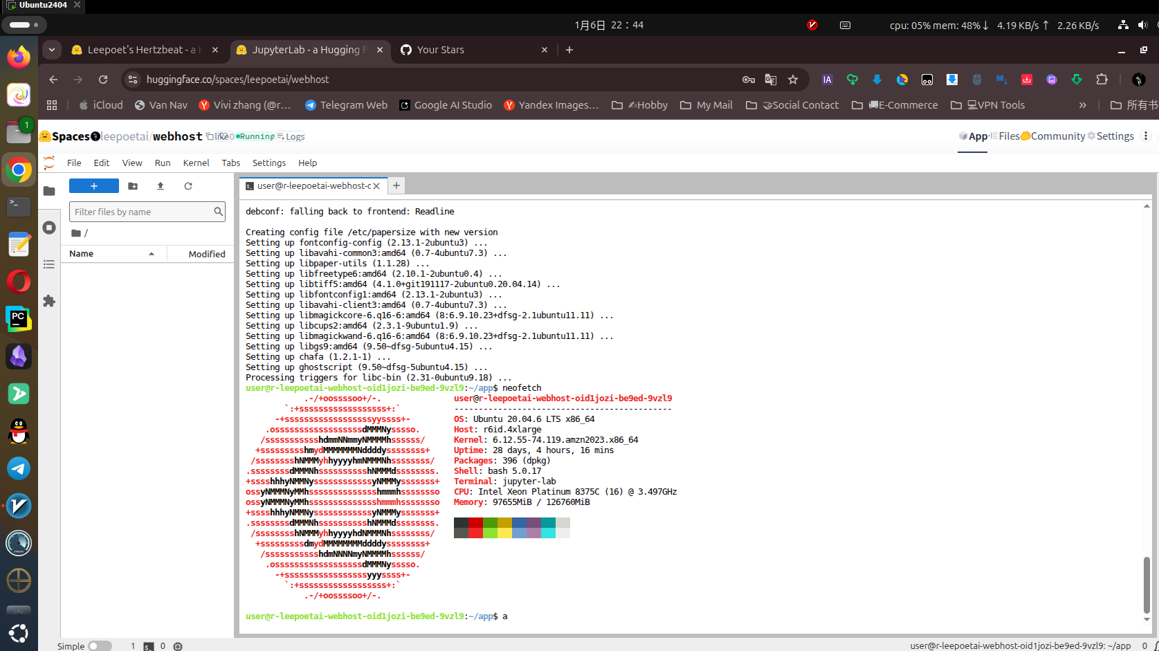 但算是一种尝试吧,无论如何目前来讲Hugging Face 不仅是 AI 开发者的天堂,还是白嫖党的宝藏!从开发环境到 Web 服务,再到桌面系统,只要敢想,就能用免费额度实现~ 不管是学生党学 Linux、开发者测项目,还是搭个人小网站,这波羊毛都值得冲!先这样吧,还有一些玩法还在探索中,不过正因为有terminal又是ubuntu的系统,所以玩法还是很多的,很多git,nodejs项目都可以拉取部署后,通过服务端口穿透出来,原理都差不多。