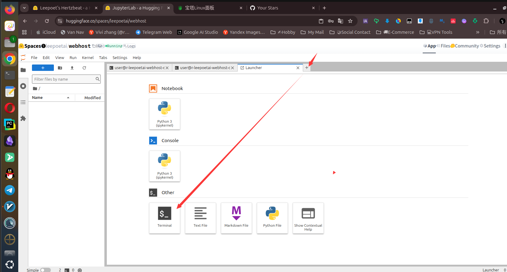 进入jupterlab界面,直接点teminal进入终端。